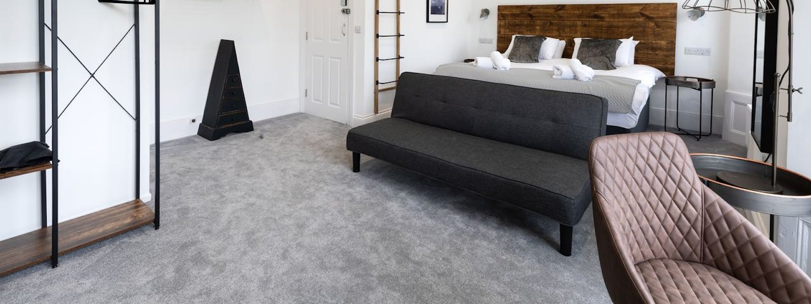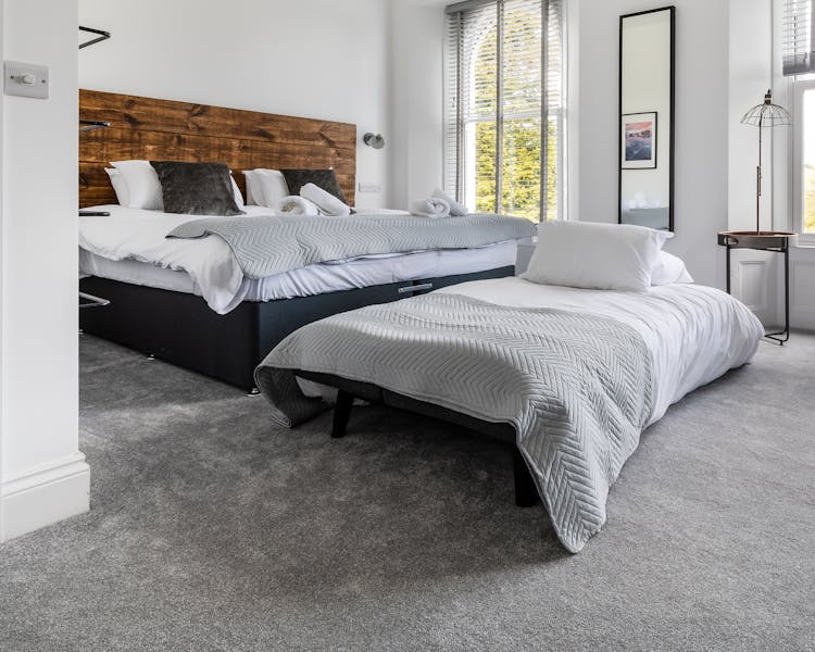 Room 5 This huge first-floor deluxe suite has a kitchenette and sofa/bed that comfortably sleeps one adult or two small children. Large windows provide breath-taking views over Kimberley Park.