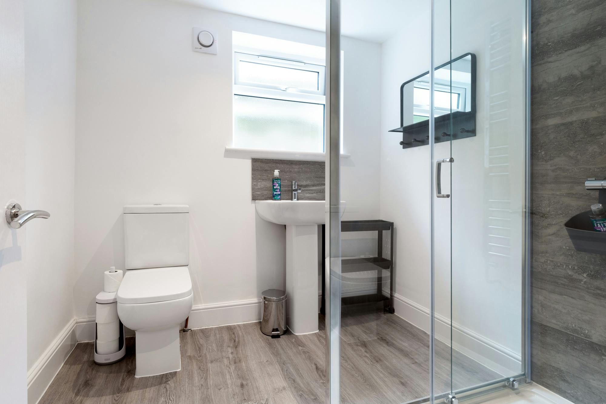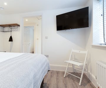 Large shower room, King size 5’ double bed, Full Kitchen, Tea and Coffee, Superfast Wi-Fi, Smart TV’s with Netflix in every room, Reading Lamps, Clothes Storage, Bedside tables